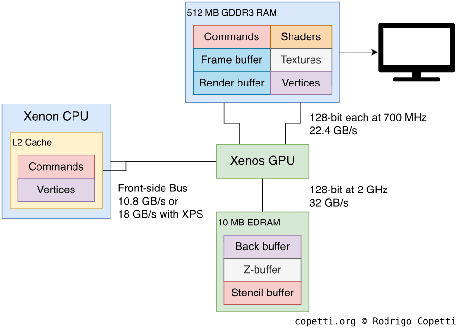 The Xenon CPU and ATI Xenos GPU are not discrete components; they are intricately linked via a proprietary, high-bandwidth coherent bus known as the XBAR (Crossbar). This interconnect is the foundation of the console's unified memory architecture (UMA), a 512MB pool of GDDR3 RAM shared coherently between the CPU and GPU.